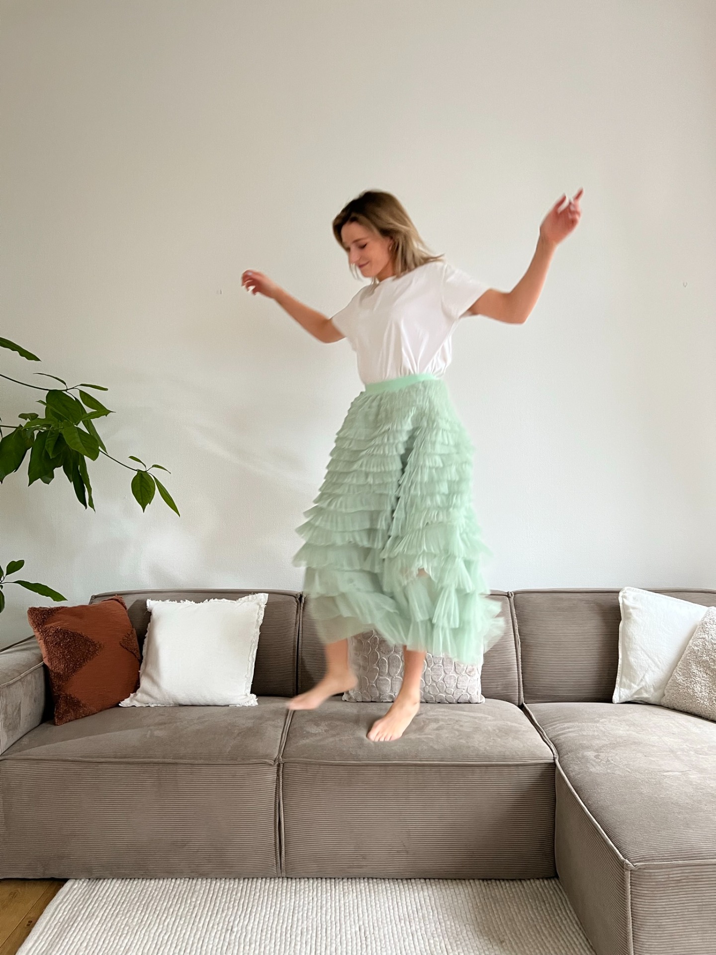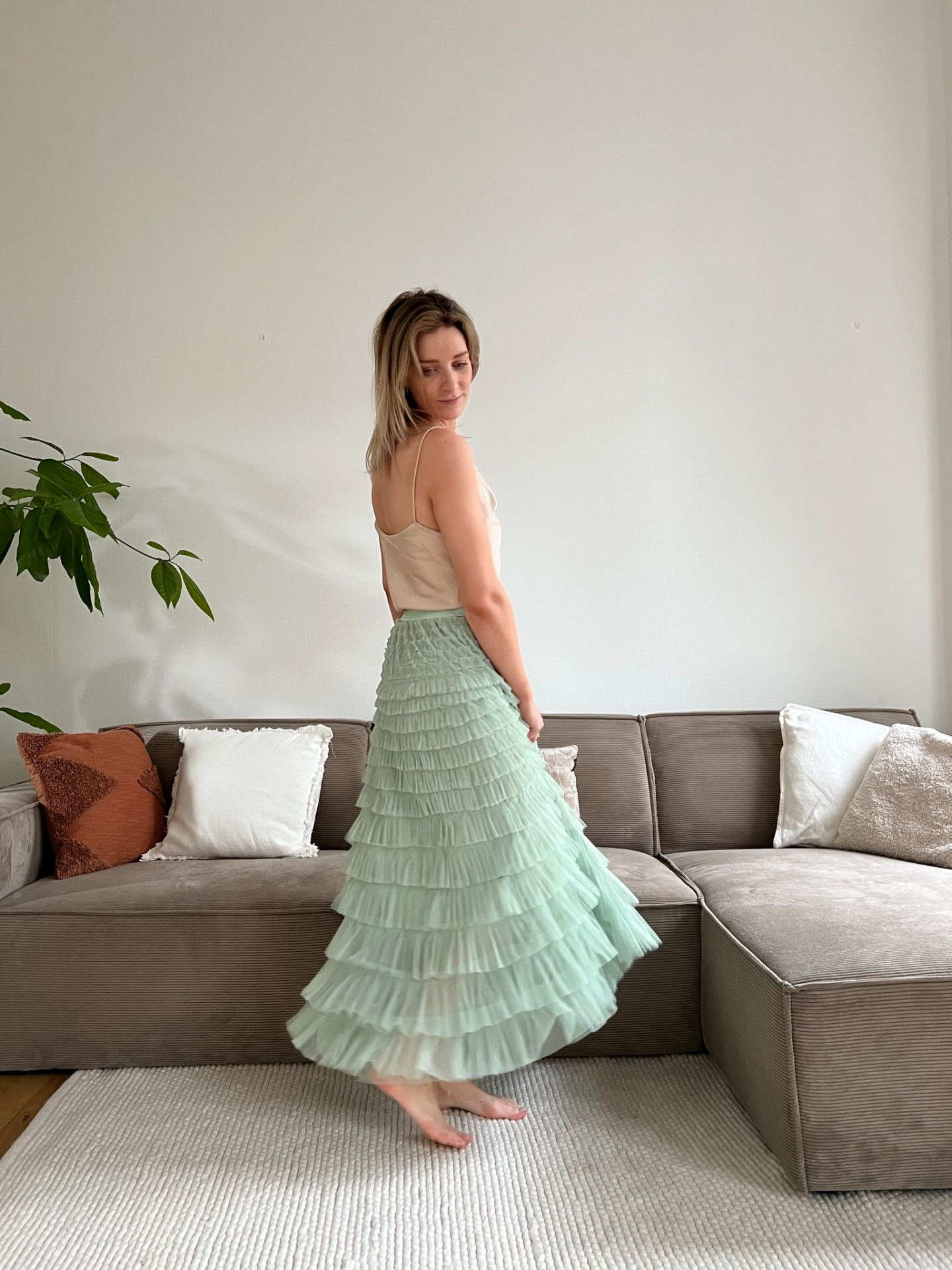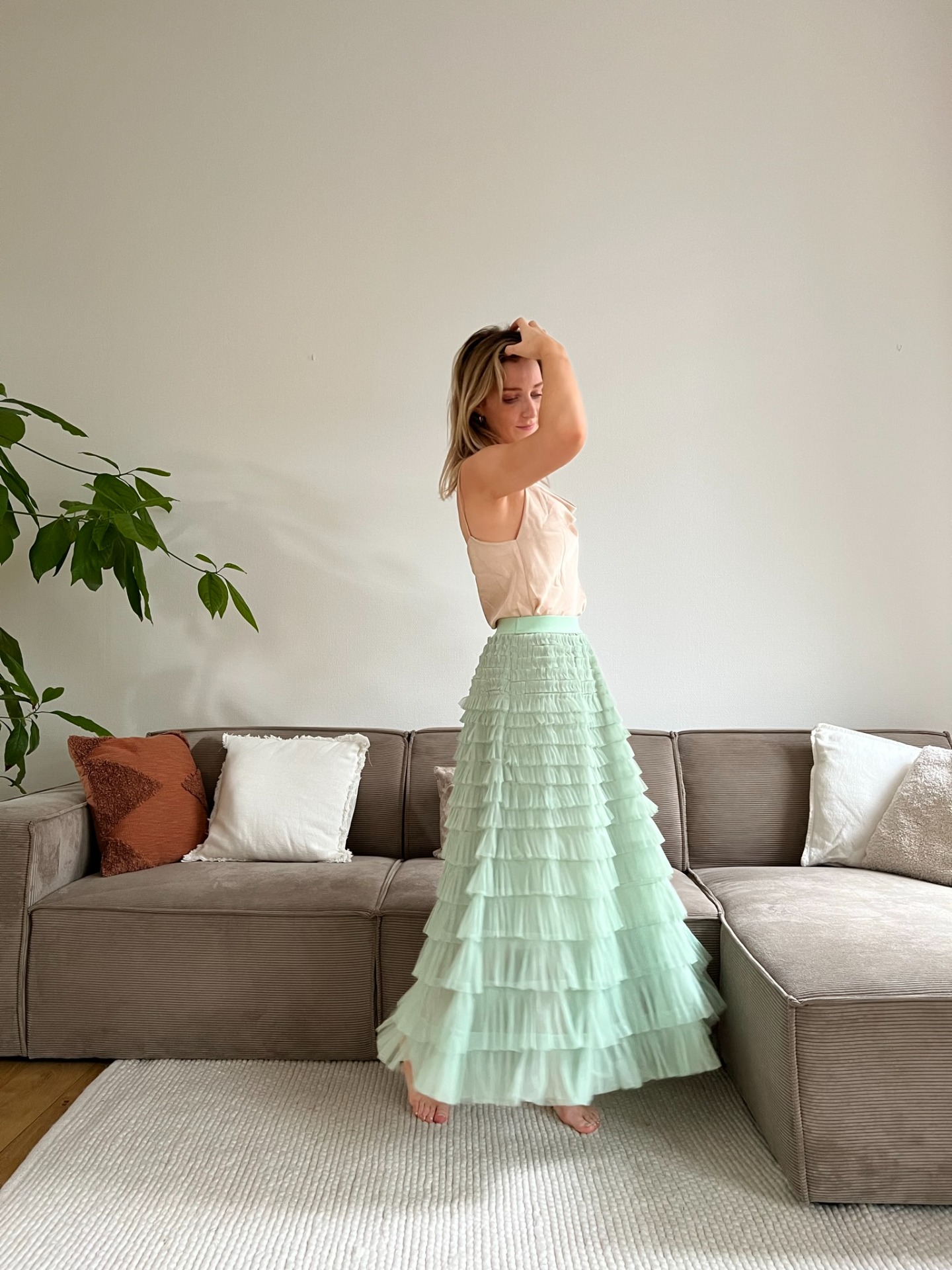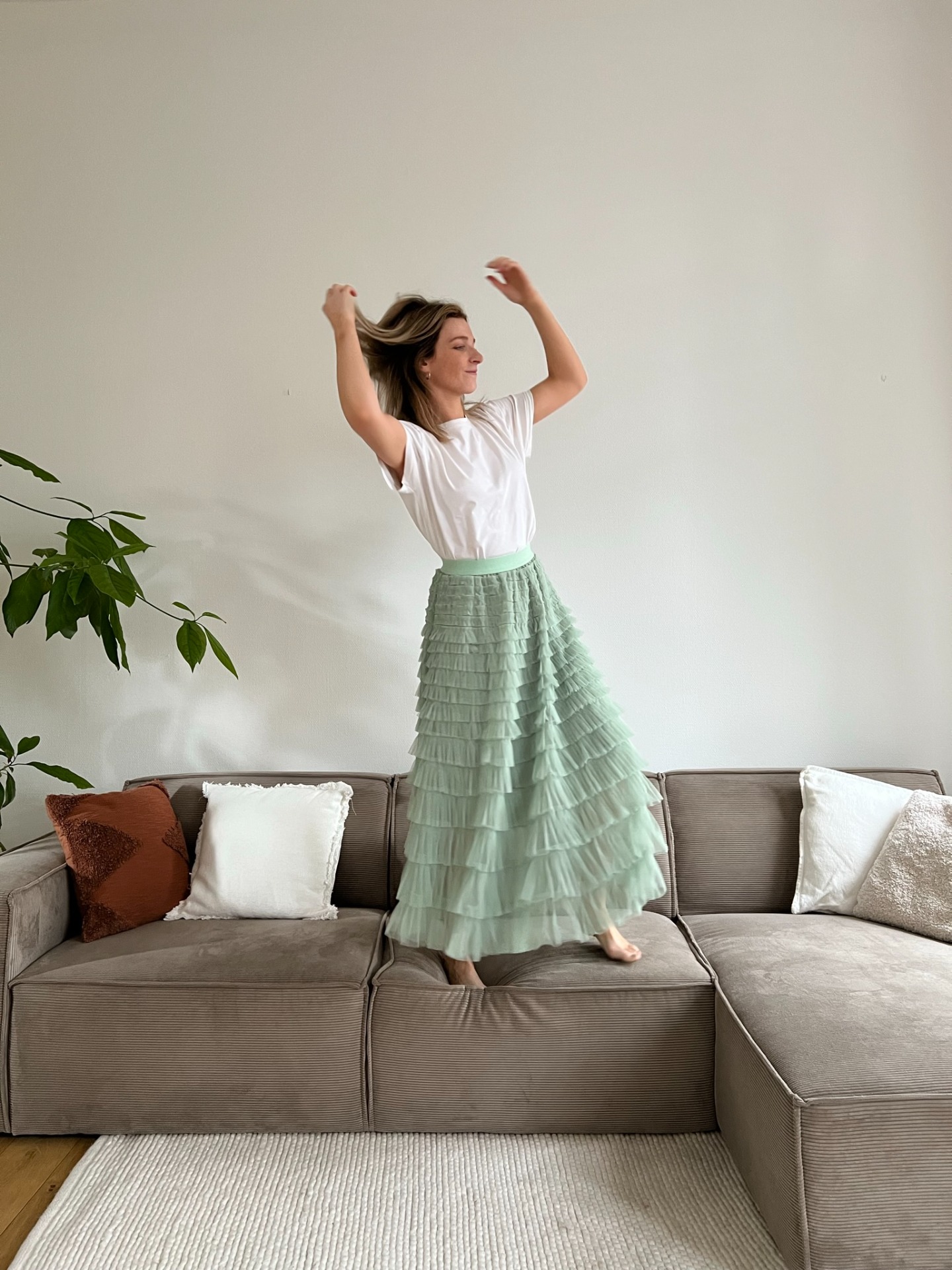 Een heerlijk lichte ruffle-rok met spaanse vibes beschikbaar in het lichtgroen en lichtblauw. Deze is gemakkelijk te combineren en kan je dragen voor zowel chique als meer casual gelegenheden.